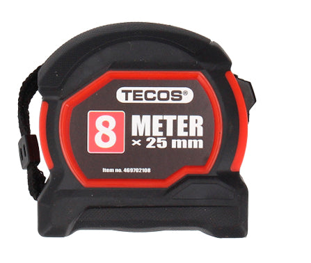 Iskunkestävä ABS-kehys luistamattomalla kumipinnoitteella. Mittanauha on valmistettu teräksestä, jonka pinta on nailonpinnoitettu